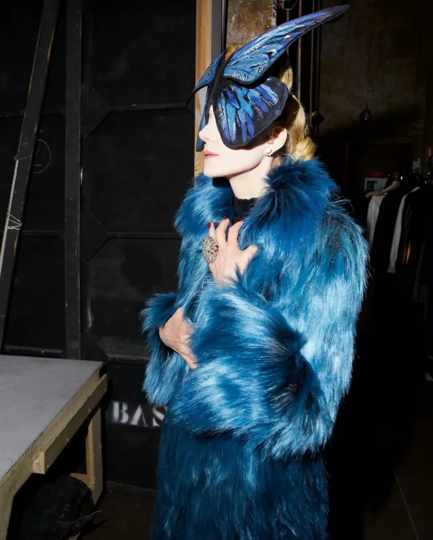 58-летняя Рената Литвинова опубликовала снимки своего нового образа для спектакля "Священное чудовище", который накануне прошёл в Париже. На закулисных кадрах главная героиня и режиссёр пьесы позирует в синей шубе и головном уборе в форме бабочки авторства бывшего креативного директора Balenciaga Демны Гвасалии, который разработал разные костюмы для каждого показа пьесы.