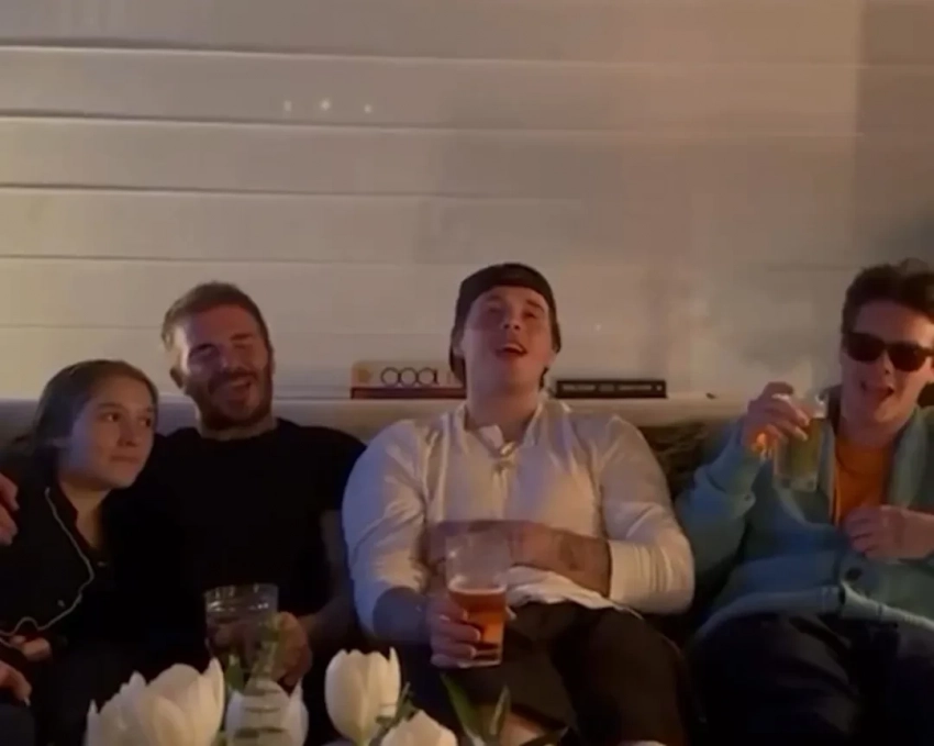 Дэвид БекхэмКруз Бекхэм на фоне фотографии отцаРанее Виктория Бекхэм отметила 51-й день рождения в кругу семьи и друзей на яхте, а также примерила образ своей невестки Николы Пельтц.