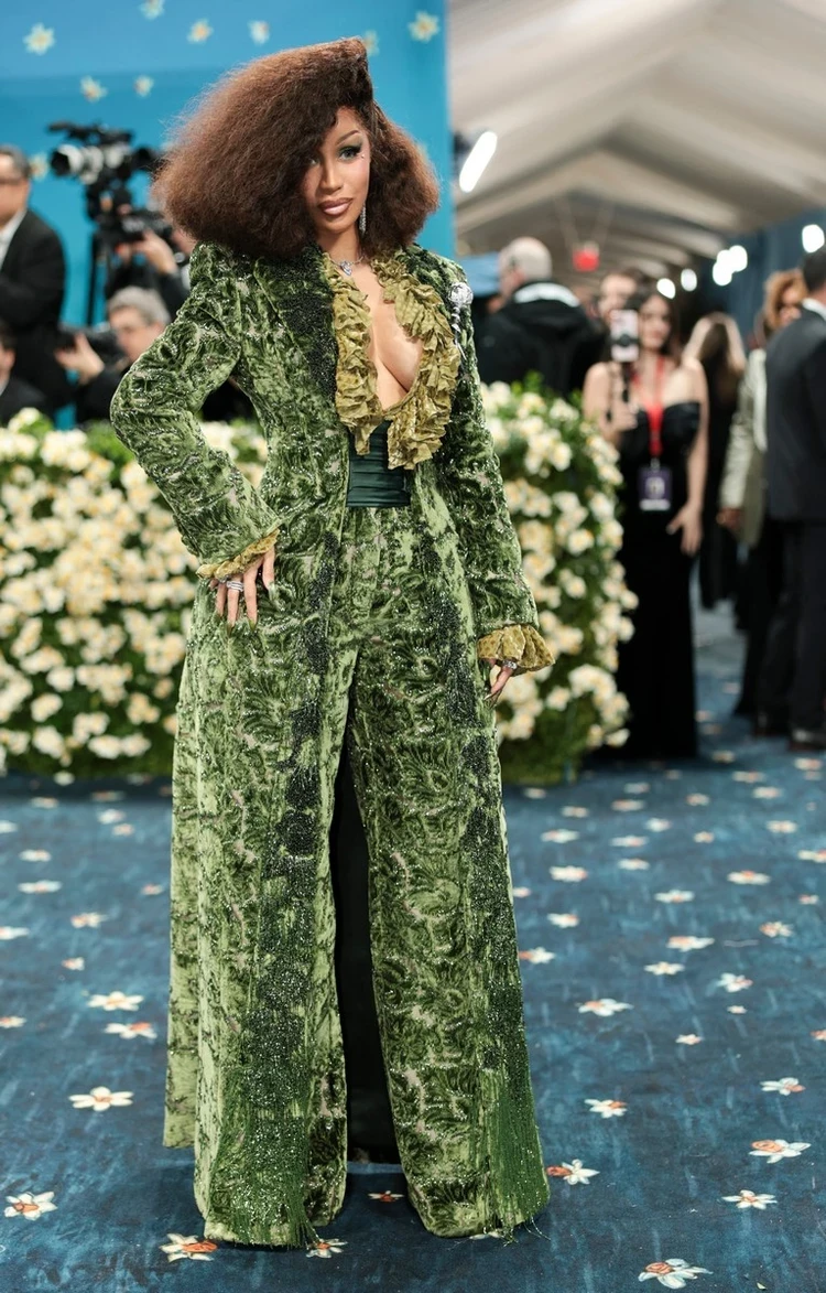 Карди Би появилась в бархатном зеленом костюме, который напоминал… обивку дивана.