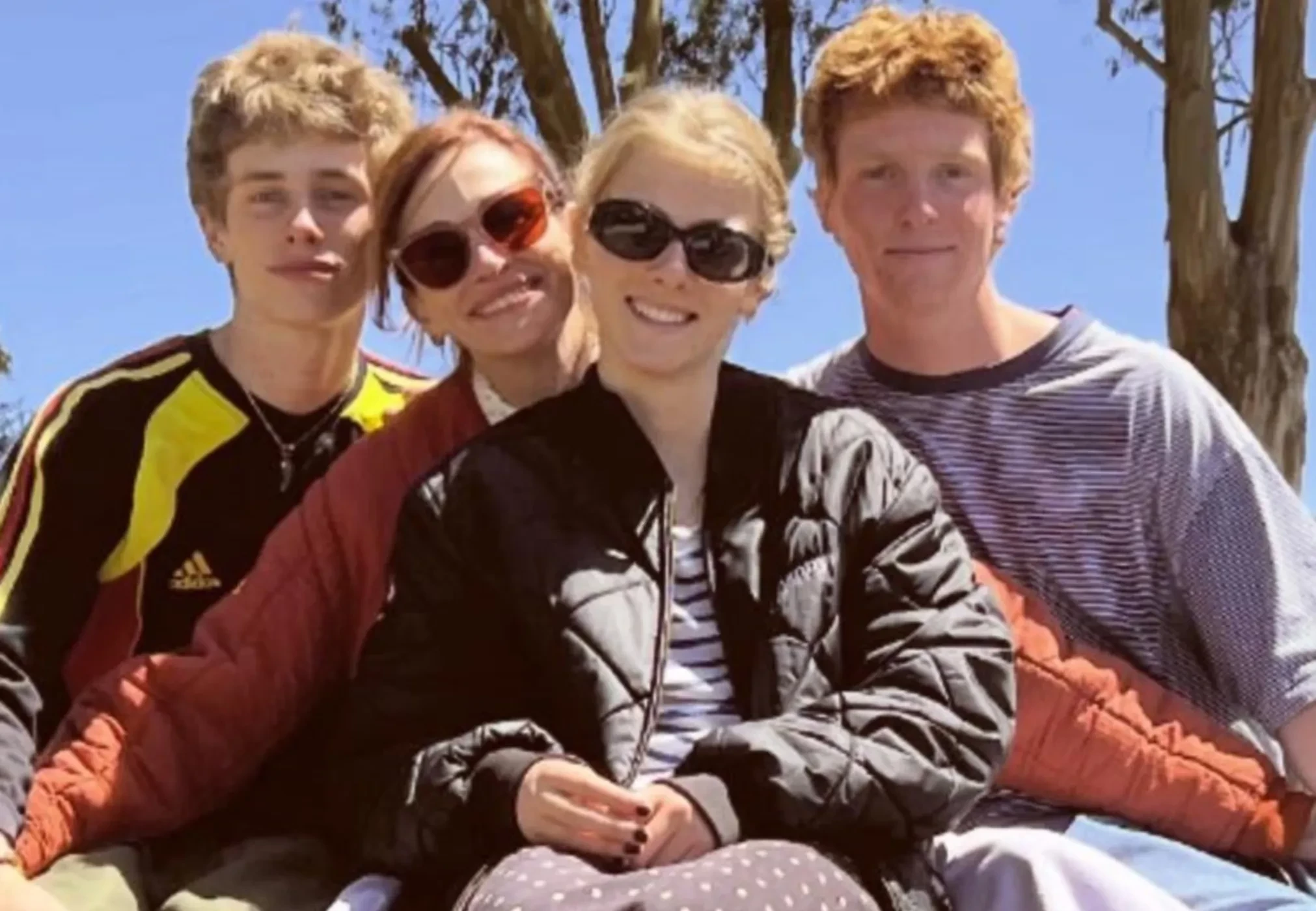 На фото 57-летняя актриса запечатлена с сыновьями: 17-летним Генри и 20-летним Финнеасом. Они сидят на пне, а перед ними расположилась их 20-летняя сестра Хейзел. Хейзел, как и её мать, выбрала солнцезащитные очки, но вместо джинсов надела юбку в горошек. Генри и Финнеас, тем временем, были в футболках, джинсах и брюках-карго. "Мамы делают самые крутые вещи. Люблю этих ребят", — подписал публикацию Модер, который, по всей видимости, и сделал снимок.