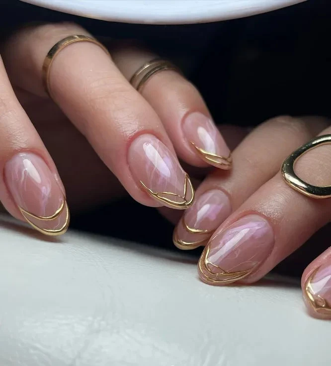 Импрессионизм на ногтях: тонкие золотые отблески