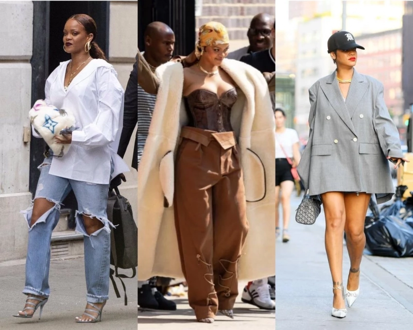 Смелость — ее второе имя. Рири не боится красного латекса, острых плеч, прозрачных тканей и объемных украшений. Она умеет сочетать гламур и агрессию, женственность и силу. Главное правило от Рианны: не бойтесь акцентов — будь то массивные серьги или броский макияж.