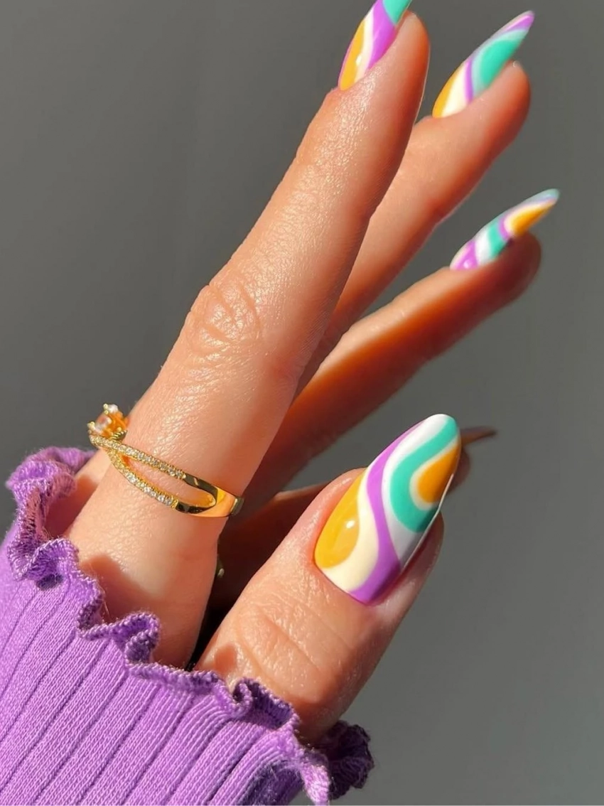Карамельный маникюр — это настоящее искусство, которое хочется не только любоваться, но и съесть! Нежные пастельные оттенки, такие как розовый, лавандовый, лимонный и мятный, создают ощущение праздника. Мастера могут использовать спиральные завитки или хаотичные брызги, напоминающие карамельную крошку, чтобы добавить ногтям особую изысканность.