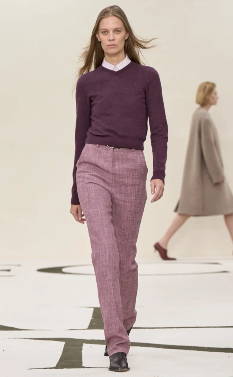Модный Дом Fendi предлагает не бояться цвета и носить йогуртово-розовый с головы до ног — пальто, сапоги, сумка, платье. Такой образ выглядит свежо, дерзко и абсолютно по-осеннему, если дополнить его объемными тканями: кашемиром, замшей, зернистой кожей. А для тех, кто не готов к полному розовому погружению, Fendi рекомендует ввести цвет в образ аккуратными акцентами — например, надев светло-розовый верх к темно-коричневым брюкам. Эта пара создает сбалансированный и изысканный контраст.