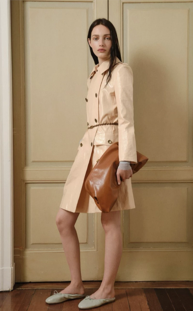 Сумки-трапеции снова актуальны. Их отличает лаконичная форма, длинные ручки и вместительность. Такая модель удобна и идеально работает в минималистичных образах. Но есть нюанс: лучше сочетать ее с современными силуэтами и контрастными фактурами, а не с нарочито романтичными платьями.