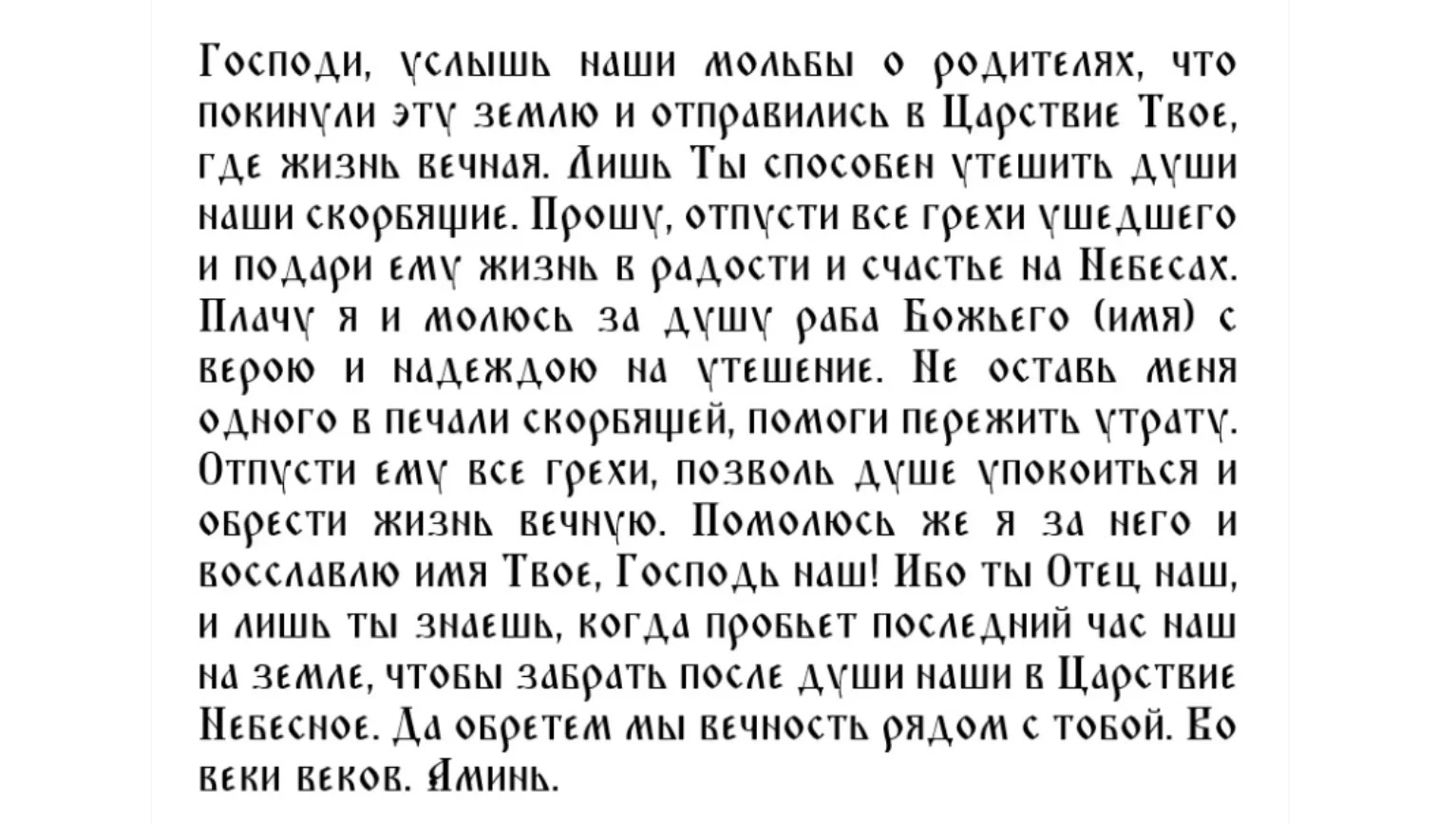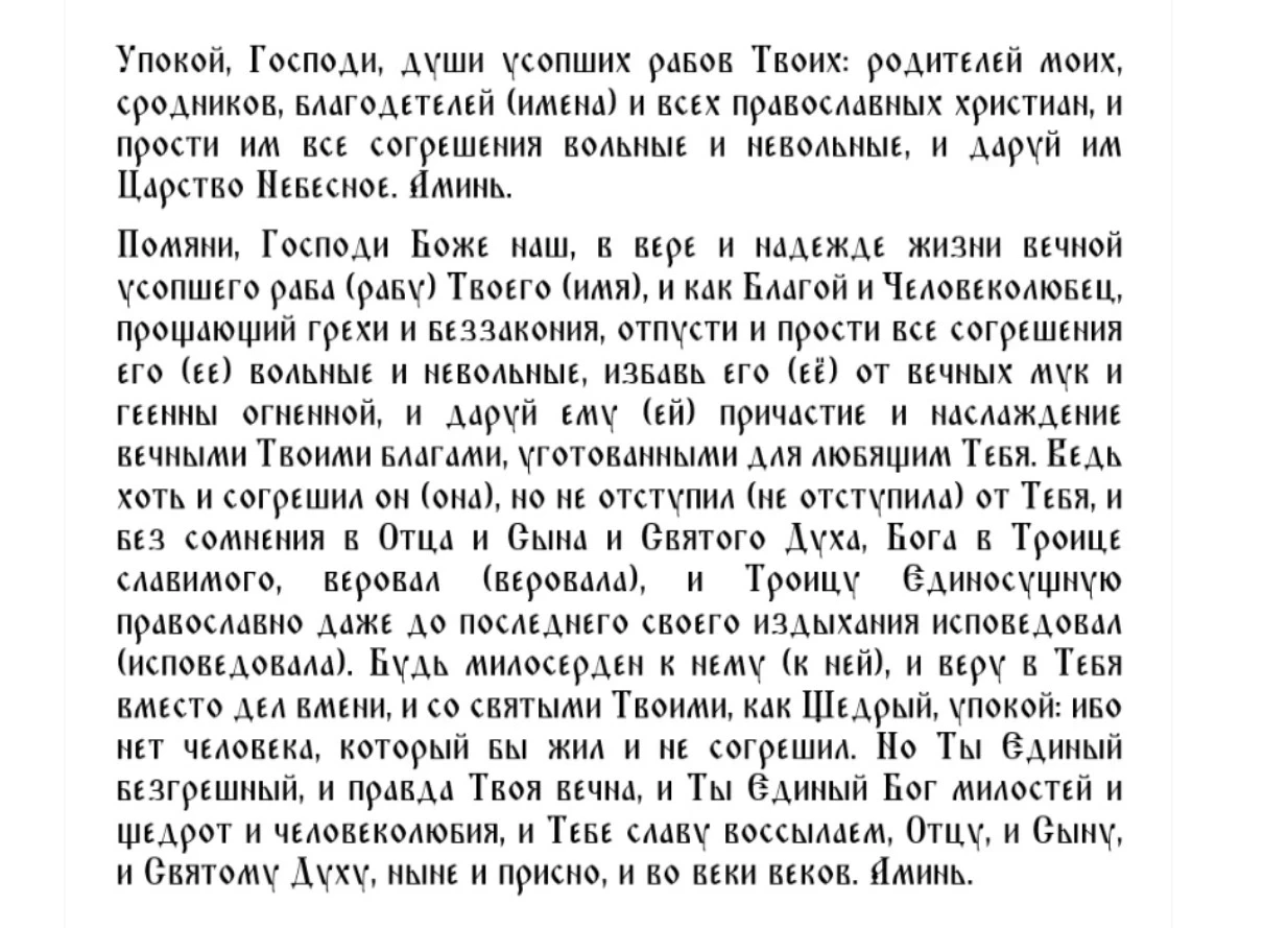 Основная молитва о душах родных и друзей